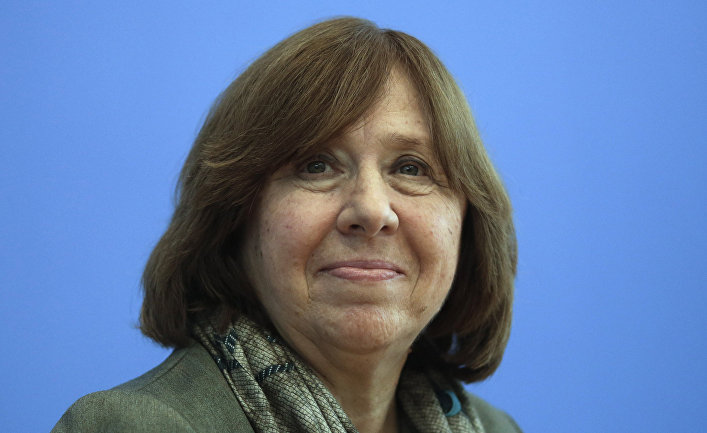 Я стою на этой трибуне не одна… Вокруг меня голоса, сотни голосов, они всегда со мной. С моего детства. Я жила в деревне. Мы, дети, любили играть на улице, но вечером нас, как магнитом, тянуло к скамейкам, на которых собирались возле своих домов или хат, как говорят у нас, уставшие бабы. Ни у кого из них не было мужей, отцов, братьев, я не помню мужчин после войны в нашей деревне — во время Второй мировой войны в Белоруссии на фронте и в партизанах погиб каждый четвертый белорус. Наш детский мир после войны — это был мир женщин. Больше всего мне запомнилось, что женщины говорили не о смерти, а о любви. Рассказывали, как прощались в последний день с любимыми, как ждали их, как до сих пор ждут. Уже годы прошли, а они ждали: «Пусть без рук, без ног вернется, я его на руках носить буду». Без рук… без ног… Кажется, я с детства знала, что такое любовь…