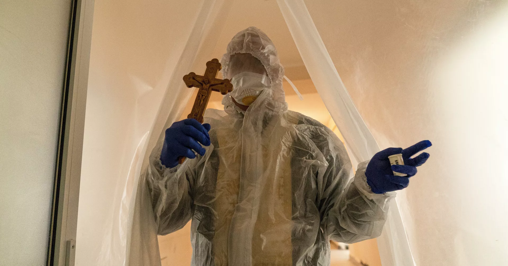 Священник в защитном костюме посещает пациентов коронавирусного отделения больницы во Львове, Украина - ИноСМИ, 1920, 13.01.2021