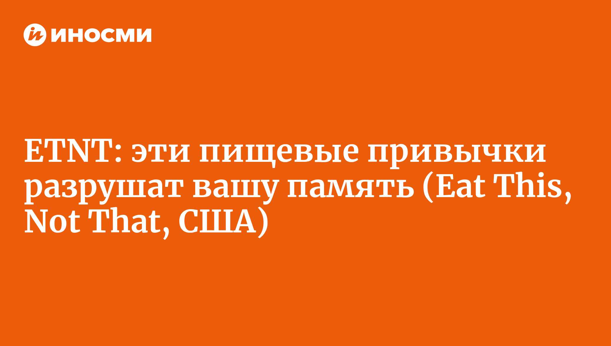 Ваш образ жизни оказывает мощное воздействие на здоровье мозга, и даже та пища, которую вы едите, может приносить пользу или вред памяти, пишет Eat This, Not... | 01.03.2022, ИноСМИ