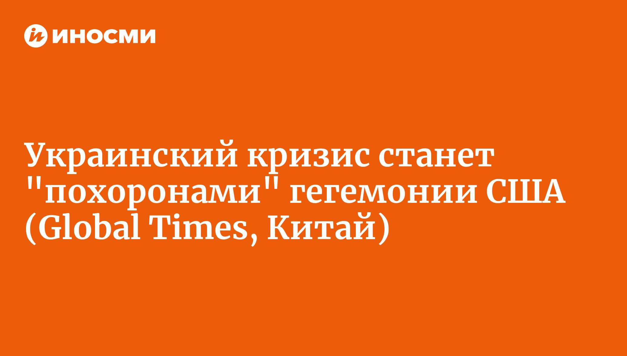 Global Times (Китай): военная операция на Украине станет похоронами гегемонии США и концом эпохи доллара