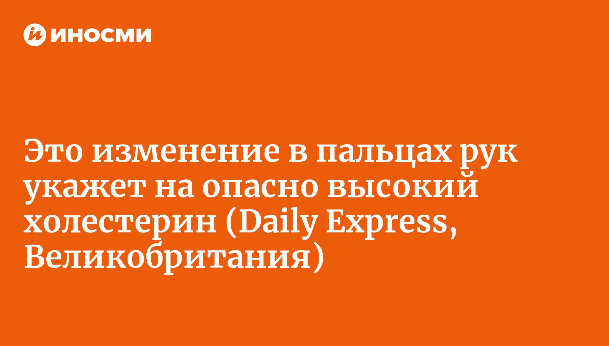 Фиона Каллингем (Fiona Callingham)Повышенный холестерин, если его быстро не понизить, может стать причиной серьезных проблем со здоровьем, включая инсульт и инфаркт. Дело в том, что, накапливаясь в крови, он может закупоривать артерии и вены в организме. Клинические признаки высокого холестерина присутствуют не всегда, но есть определенные сигналы, за которыми надо следить.Эксперт объяснил, что признаком наличия проблем могут быть трудности с распрямлением двух пальцев. Эту болезнь называют контрактурой Дюпюитрена. При ее возникновении невозможно полностью разогнуть безымянный палец и мизинец, объяснила доктор Дебора Ли (Deborah Lee). По ее словам, это "своеобразная деформация ладони"."Сухожилия четвертого и пятого пальцев на руке сокращаются и напрягаются. Из-за этого становится трудно полностью выпрямить их. Со временем пальцы сгибаются к ладони, – рассказала она.Контрактура Дюпюитрена чаще возникает у людей с повышенным уровнем холестерина, но она также связана с курением, алкоголем и диабетом"."Многие люди впервые узнают, что у них повышенный холестерин, только когда попадают в больницу с инфарктом, – продолжила доктор Ли. – Повышенный холестерин можно определить с помощью анализа крови. Проверку на холестерин в Британии предлагают всем взрослым людям в возрасте от 40 до 74 лет. Она проводится бесплатно во время диспансеризации раз в пять лет".Есть и другие необычные признаки, за которыми надо следить."Геронтоксон, или беловато-серое помутнение края роговой оболочки глаза – это еще один признак. У пожилых людей это встречается часто, но если такое происходит с человеком моложе 40 лет, можно предположить, что у него повышенный уровень холестерина. Еще есть ксантелазма – беловато-желтые бляшки, образующиеся на лице вокруг глаз и носа. Ксантомы сухожилий появляются на суставах пальцев, на коленях, на ахилловом сухожилии, а также на сухожилиях стоп, – объяснила доктор Ли.Отсутствие пульса – врач при осмотре пациента может обнаружить, что у того в конечностях отсутствует пульс. Еще он может услышать аномальные шумы, прослушивая закупоренные артерии пациента стетоскопом. Может также присутствовать сердечный шум, скажем, из-за стеноза устья аорты".Если у вас появился один из таких симптомов, вам следует попросить врача в своей поликлинике назначить проверку на холестерин.Когда у людей возникают определенные проблемы со здоровьем, включая ожирение, менопаузу, болезнь печени, болезнь почек, алкоголизм и гипофункцию щитовидной железы, высокий уровень холестерина у них более вероятен.Есть и другие показатели, требующие медицинской проверки:По словам доктора Ли, образ жизни тоже может влиять на уровень холестерина, скажем, если вы едите жирную пищу, употребляете много сахара, курите, испытываете стрессы и ведете малоактивный образ жизни.