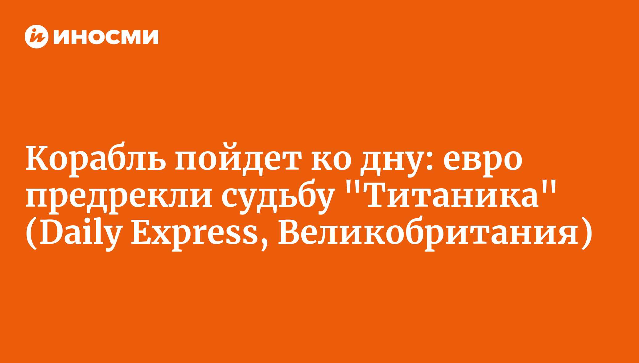 Затем Нуаре сравнил евро с "Титаником". "Реальный и самый насущный вопрос сейчас — понять, когда и как этот взрыв произойдет. На самом деле, еврозона сейчас смахивает на „Титаник”— математически мы понимаем, что корабль пойдет ко дну, но не хотим этого признавать", — считает он.