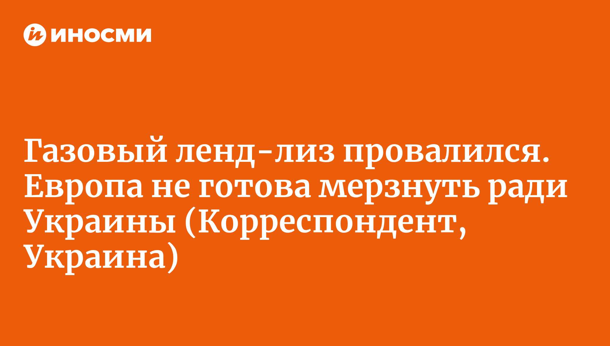 Газовый ленд-лиз провалился. Европа не готова мерзнуть ради Украины
