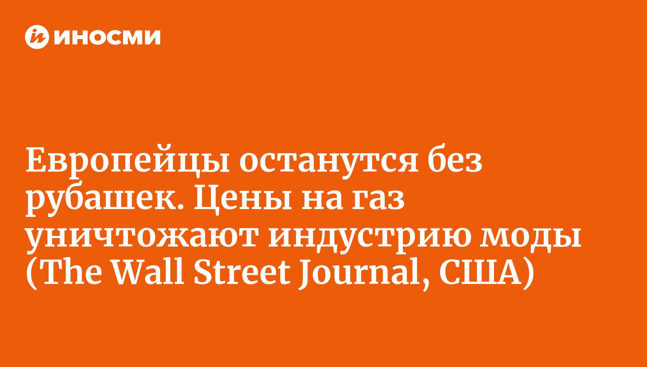 Скачок цен на газ угрожает европейской индустрии моды, пишет WSJ. Производство текстиля требует много энергоресурсов, а представители малого и среднего бизнеса, | 20.10.2022, ИноСМИ
