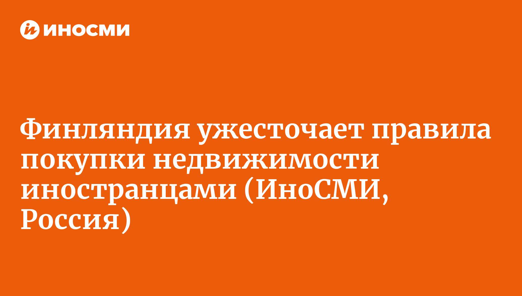 Финляндия ужесточает правила покупки недвижимости иностранцами
