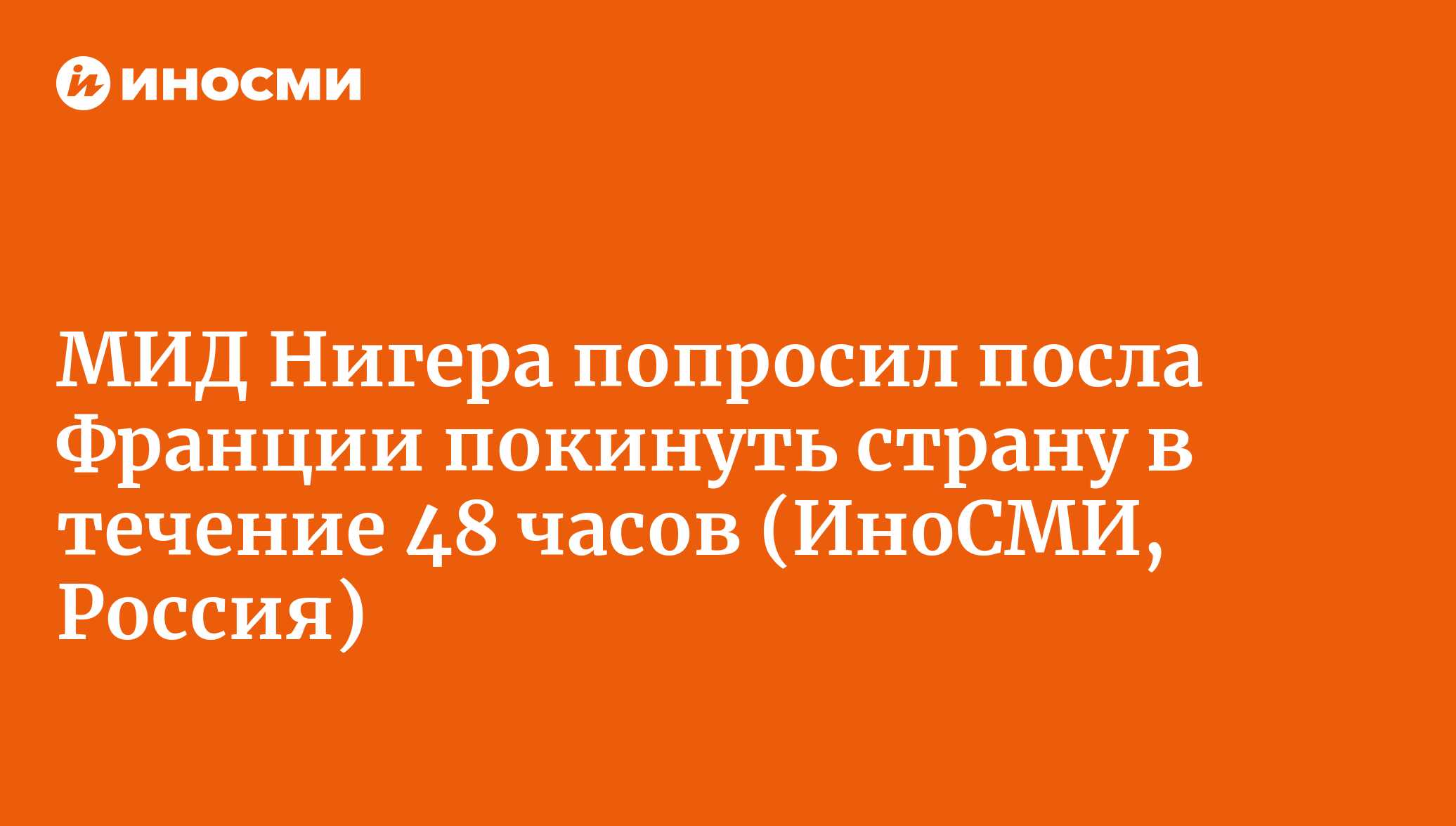 В МИД Нигера заявили, что французский посол лишается агремана и должен покинуть страну в течение 48 часов. Документ размещен на сайте ведомства.Причиной подобного решения стали действия французского правительства, не отвечающие интересам Нигера."Компетентные нигерские власти приняли решение лишить своего агремана господина Сильвена Итте и попросить его покинуть территорию Нигера в (течение) 48 часов", - отметили во внешнеполитическом ведомстве.