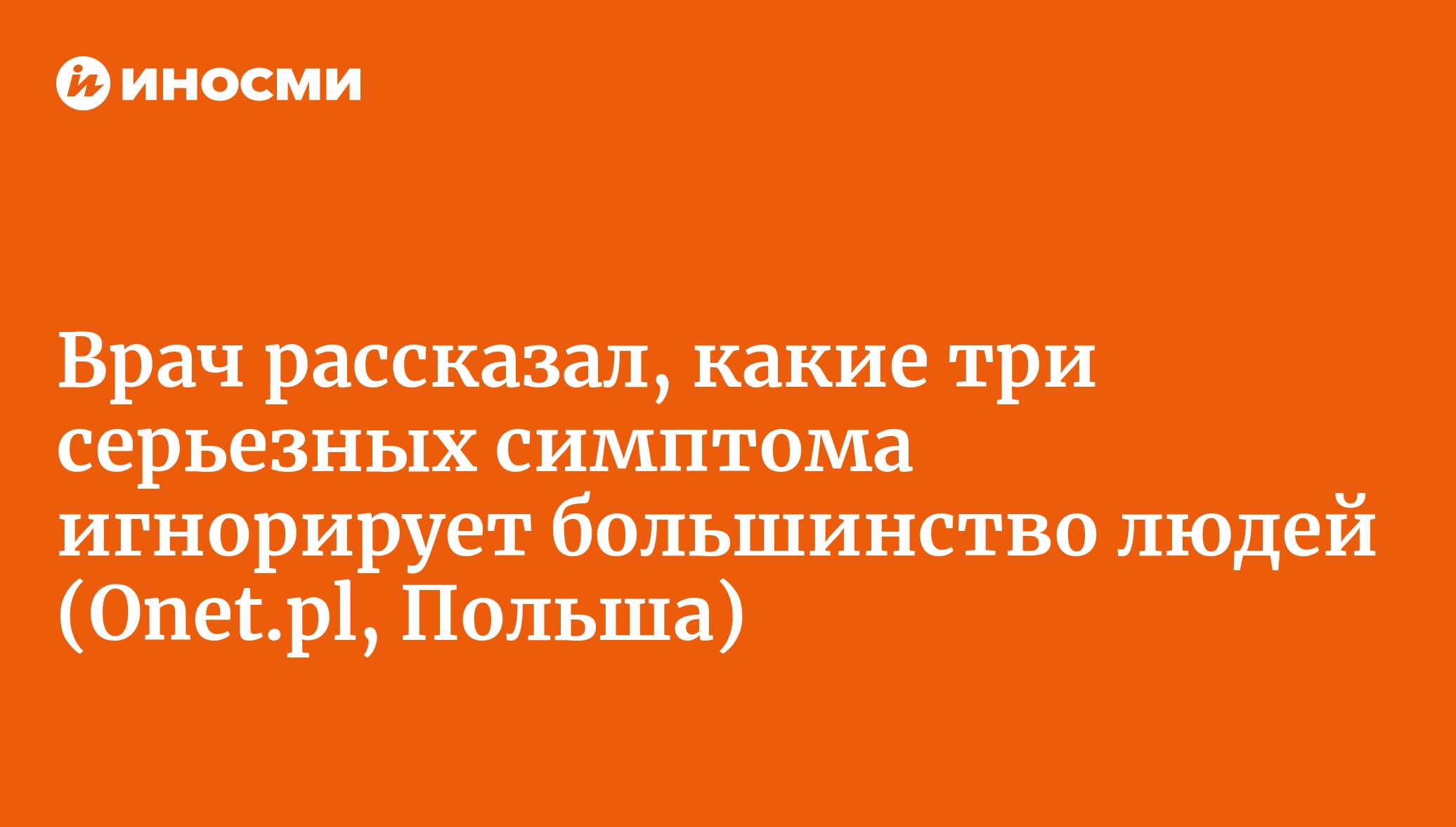 Мы часто их не замечаем или пытаемся рационально объяснить. И это ошибка, потому что эти симптомы могут свидетельствовать о серьезных заболеваниях. Кроме того, они снижают комфорт жизни. Если вы заметили у себя какие-то из них, обязательно запишитесь на консультацию к врачу и сдайте анализы.Читайте ИноСМИ в нашем канале в TelegramТри серьезных симптома, которые игнорирует большинство людейМой дедушка часто говорил, что если человеку не больно, значит, он уже мертв. Таково было то поколение. Привыкли к трудностям и были воспитаны так, чтобы не жаловаться и быть стойкими. Сегодня, к счастью, это меняется, хотя многие люди все еще исходят из предположения, что у каждого должны быть какие-то недуги. Это неправда. Каждый человек заслуживает полноценной здоровой жизни, но должен позаботиться об этом сам. И первый шаг — следить за своим организмом и действовать профилактически.Доктор Михал Вжозек (Michał Wrzosek) регулярно делится своими знаниями в Instagram*. Обычно он говорит о снижении веса и здоровом питании, но также затрагивает близкие темы. Недавно он обратил внимание на часто игнорируемые симптомы, которые могут свидетельствовать о том, что в организме происходит что-то плохое.Некоторые из них мешают больше, другие меньше, но не следует относиться к ним, как к норме. Любой из этих симптомов может, хотя, конечно, и не обязательно, быть знаком серьезных проблем со здоровьем.На первое место эксперт ставит низкое либидо. "У него могут быть психологические причины, но сначала необходимо устранить физиологические, такие как гормональные нарушения, гипертония или диабет", — говорит Михал Вжозек.Второй недооцененный симптом — вздутие живота. "Мы часто игнорируем его и говорим, что съели что-то не то. Однако, если такие вздутия появляются постоянно, это необходимо проверить", — советует он и добавляет, что они могут быть связаны с избыточным бактериальным ростом в тонкой кишке, пищевой непереносимостью и даже раком яичников.Еще один симптом, который многие люди игнорируют, — это постоянное ощущение холода. Это может быть связано с серьезными проблемами с сердечно-сосудистой системой или гипотиреозом, а также с дефицитом элементов, который вызывает анемию.*деятельность Meta (соцсети Facebook и Instagram) является экстремистской и запрещена в России