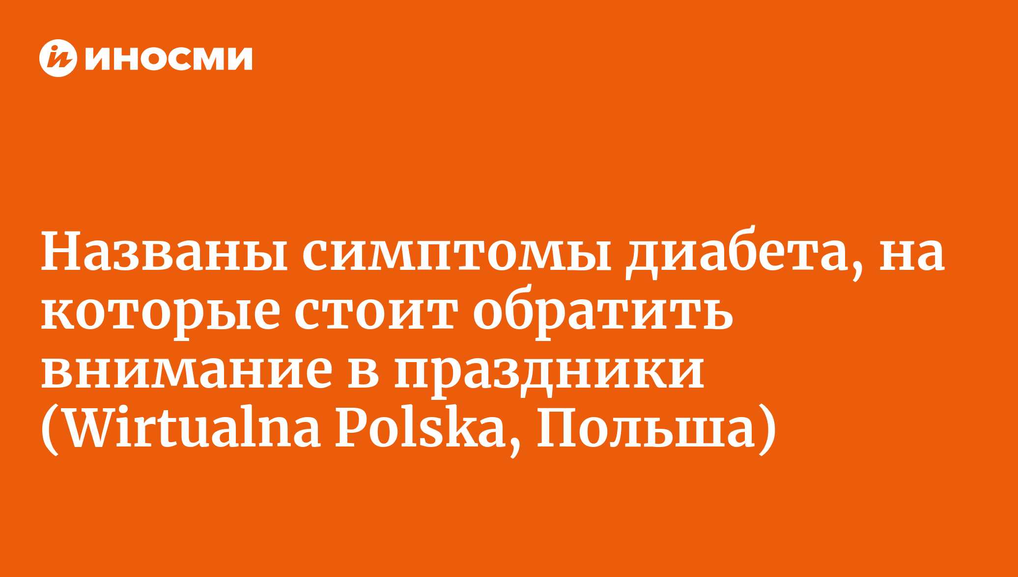 Доминика Найда (Dominika Najda)Праздники — это время, когда мы наконец можем расслабиться и немного побаловать себя. Однако, когда вы набиваете живот угощениями и слишком увлечены, то можете заметить некоторые необычные изменения, которые могут вас беспокоить.Читайте ИноСМИ в нашем канале в Telegram1. Рождественское безумие и диабетНекоторые из жалоб, возникающих во время праздников, могут оказаться ранним звоночком о диабете второго типа. Болезнь иногда остается скрытой, потому что не все симптомы очевидны и их легко не заметить.Однако некоторые симптомы могут стать более заметными в праздничные дни, когда легко переусердствовать с едой и крепкими напитками. Какие сигналы не следует недооценивать?Чрезмерная жажда может быть связана с праздничным перееданием, но это также ключевой показатель диабета. Дисбаланс сахара в крови заставляет нас постоянно хотеть пить.Обратите внимание на посещения туалета. Частое мочеиспускание является одним из наиболее распространенных симптомов диабета второго типа: организм пытается удалить избыток глюкозы. Но также причиной может быть большое количество алкоголя, поэтому убедитесь, что это не происходит регулярно.Семейные встречи и подготовка к ужину в канун Рождества, как правило, утомительны, но крайнее чувство истощения может указывать на что-то более серьезное. Если после отдыха вам не возвращаются силы, стоит обратиться к врачу.2. Неспецифические симптомыМногие праздничные продукты могут вызвать неприятный запах изо рта, но специфический запах является симптомом диабета второго типа. Большинство людей сравнивают его с запахом ацетона или жидкости для снятия лака.Головокружение — классический симптом праздничного похмелья, но и многие люди с диабетом жалуются на эту проблему. Обычно это происходит из-за колебаний уровня сахара в крови и обезвоживания.Изменения уровня сахара в крови могут существенно повлиять на ваше самочувствие, поэтому обратите внимание на свое настроение. Некоторые люди с диабетом раздражительны, нетерпеливы и даже агрессивны, и это совсем не из-за праздничного волнения.Повышенная нервозность и беспокойство также могут быть связаны с заболеванием диабетом. Часто, кроме того, появляется учащенное сердцебиение, спутанность сознания, тремор и тошнота. Тревожные состояния поражают 40% диабетиков.3. Проконсультируйтесь с врачомТакже обратите внимание на порезы при нарезке салатов или упаковке подарков. Если они заживают дольше, чем обычно, это может быть еще одним признаком диабета второго типа.Другие менее специфические симптомы заболевания включают темные пятна на коже, помутнение зрения, постоянный голод, трудности с концентрацией внимания и координацией, а также зуд половых органов.Диабет может быть очень опасным, если его не лечить. Появление определенных симптомов не сразу означает, что вы больны, но стоит посетить врача для проверки состояния здоровья.