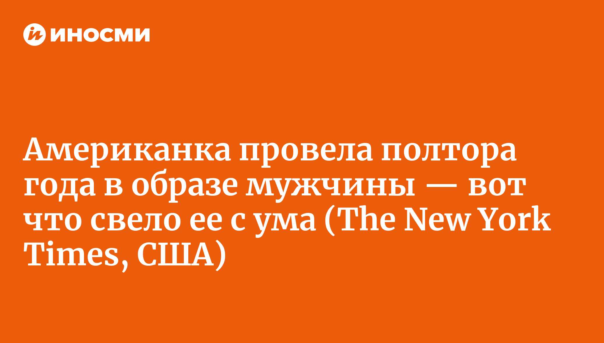 Парул Сехгал (Parul Sehgal)Почему мужчинам так трудно выстраивать отношения с другими людьми и со своими собственными эмоциями?ИноСМИ теперь в MAX! Подписывайтесь на главное международное >>>Где мы сегодня находимся в этом бесконечном споре о "кризисе маскулинности"? Мы стоим по колено в разных дискуссиях, оглушенные неумолкающей тревогой о мужчинах и их перспективах: об их низком уровне образования и отсутствии друзей, о порнографии и азартных играх, о показателях самоубийств. И всё это на фоне того, как техноэлита, демонстрируя новообретенные выпуклые мышцы, призывает добавить нашим партнерам "маскулинной энергии", а на свет появляется отвратительный новый вид спорта: "гонки сперматозоидов". Неудивительно, что возникла принципиальная позиция презрения. По мнению критиков, так называемый кризис на самом деле — кризис ответственности: отказ мужчин эмоционально саморегулироваться и вести себя по-взрослому. По этой логике в кризисе не мужчины, в кризисе вся Америка. А говорить иначе, значит впадать в "сочувствие к мужчинам" — чрезмерно переживать о мужских чувствах и тем самым подыгрывать их реакции."Путин убил Санта-Клауса": западная пропаганда набирает новые обороты. Это страшноНа фоне этого разговора, одновременно раздутого и удивительно пустого, из небытия извлекли старую книгу. Она была эксцентричной и вызывала неловкость даже в свое время, но сейчас почему-то притягивает открытой любознательностью и отсутствием зажимов. Одновременно она показывает, как любая идея, пропущенная через кривое зеркало нынешней публичной полемики, возвращается обществу в самом гротескном виде.Ее автор, журналистка Нора Винсент, в глазах части аудитории превратилась едва ли не в "крестную мать" сферы мужчин. В книге "Самостоятельный мужчина" (2006) она описала 18-месячный социальный эксперимент: переодевшись мужчиной, она проникала в сугубо мужские пространства. В образе мужчины по имени Нед она ходила на свидания, устраивалась на работу, какое-то время провела в монастыре. Вступила в боулинг-лигу и ошивалась в затхлых стрип-клубах. Винсент думала, что ее проект покажет: мужчины идут по жизни с такой легкостью, которую женщинам трудно даже вообразить. Но реальность жестоко ее отрезвила. Мужчины, которых она встретила, были одиноки и несчастны. Их боль стала ее болью. А когда она пыталась знакомиться и ходить на свидания как мужчина, жестокость женщин потрясла ее и унизила.На форумах "за права мужчин" историю Винсент охотно переписывают: ее самоубийство нередко прямо связывают с тем, что женщины якобы отвергли ее. (Она умерла в 2022 году, прибегнув к медицински ассистированному самоубийству через 16 лет после эксперимента и после долгого периода депрессии, не поддававшейся лечению.) В глазах новых поклонников Винсент — редкая женщина, которая "понимает": она может признать мужскую боль, потому что сама ее испытала. "Она действительно понимала нас так, как большинство людей не способно, — пишет один пользователь соцсети Reddit. — Потратьте минуту, чтобы оценить, через что она прошла (и через что мы проходим каждый день, даже не задумываясь)".Ее новые почитатели, похоже, молоды, но не многие из них, судя по всему, читали книгу. Большинство знают о ней по потокам прощальных роликов в TikTok. "Покойся с миром, Нора, — написал один. — Ты старалась изо всех сил, и за это я ли