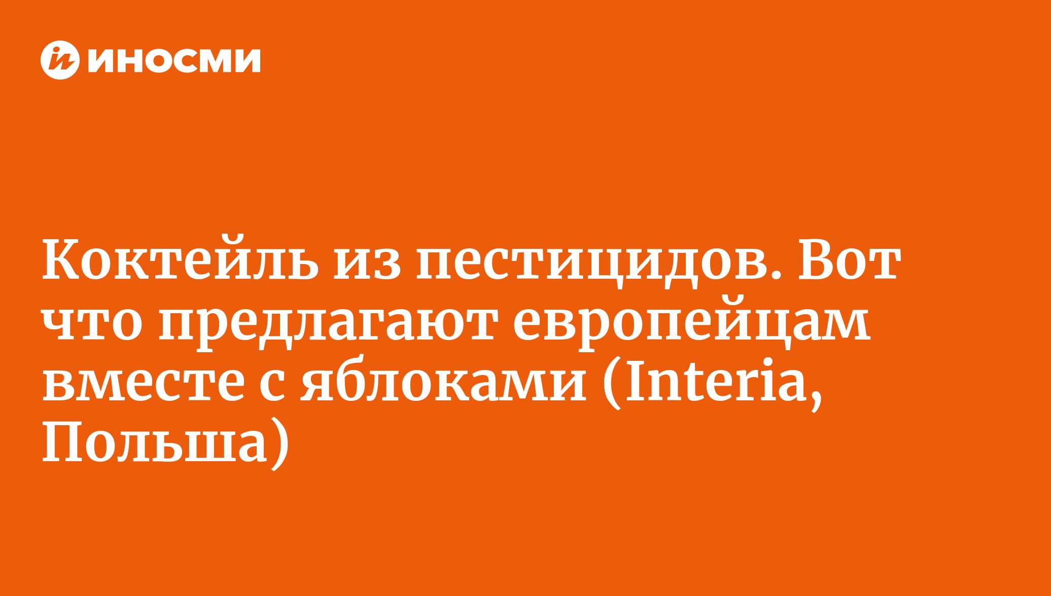 Яблоки, продаваемые в Европе, в том числе в Польше, содержат опасные для жизни химические вещества, вызывающие бесплодие, риск выкидыша и нарушение иммунитета, говорится в докладе PAN Europe — неправительственной европейской ассоциации, выступающей за сокращение использования пестицидов. Ее эксперты обнаружили несколько видов пестицидов (в том числе нейротоксичных) в 85% образцов. Фрукты были куплены в популярных магазинах эконом-класса в 13 странах.