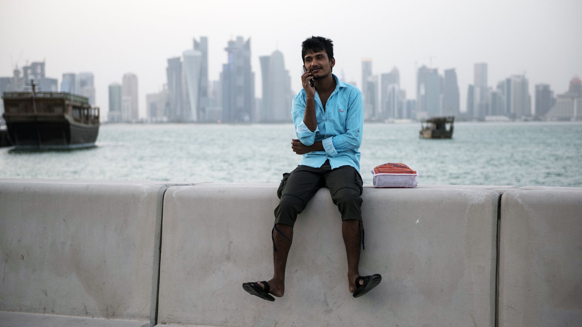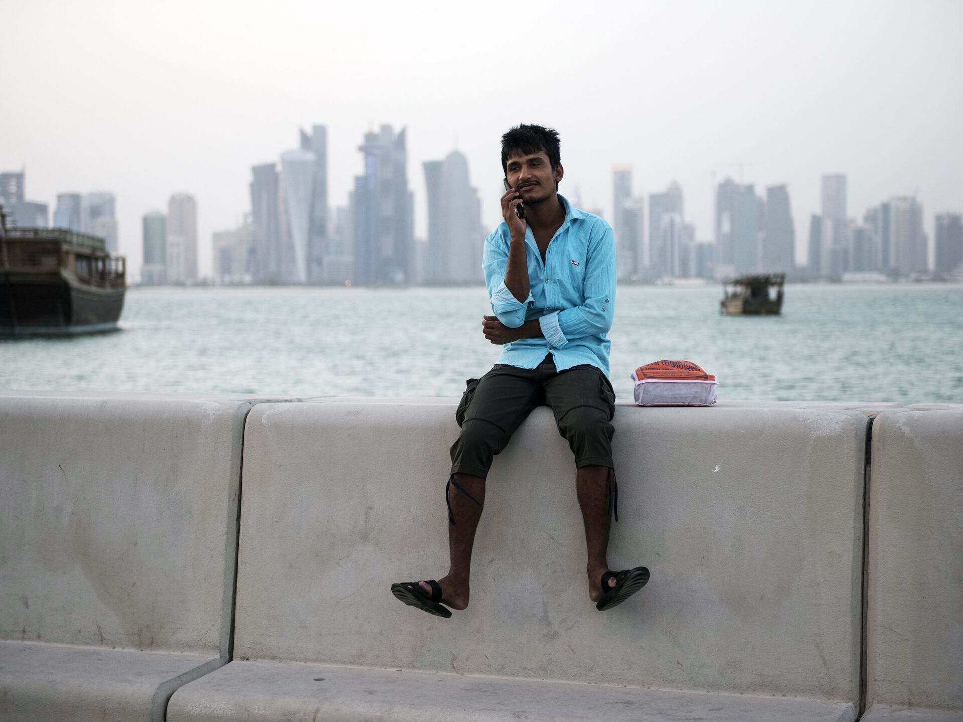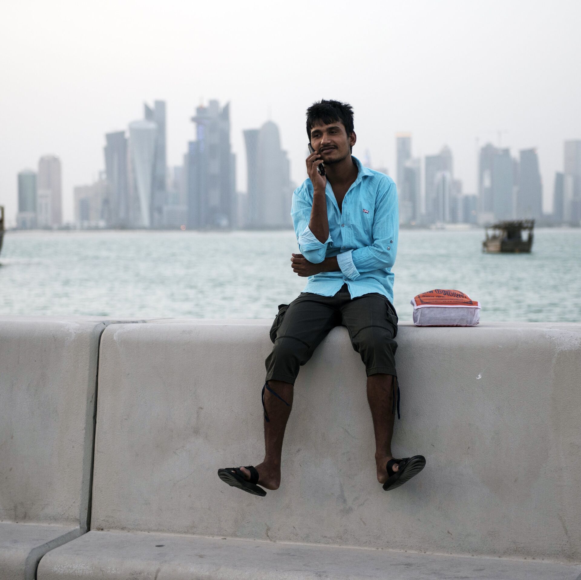 © РИА Новости Валерий Мельников / Перейти в фотобанкМужчина на набережной в Дохе, Катар