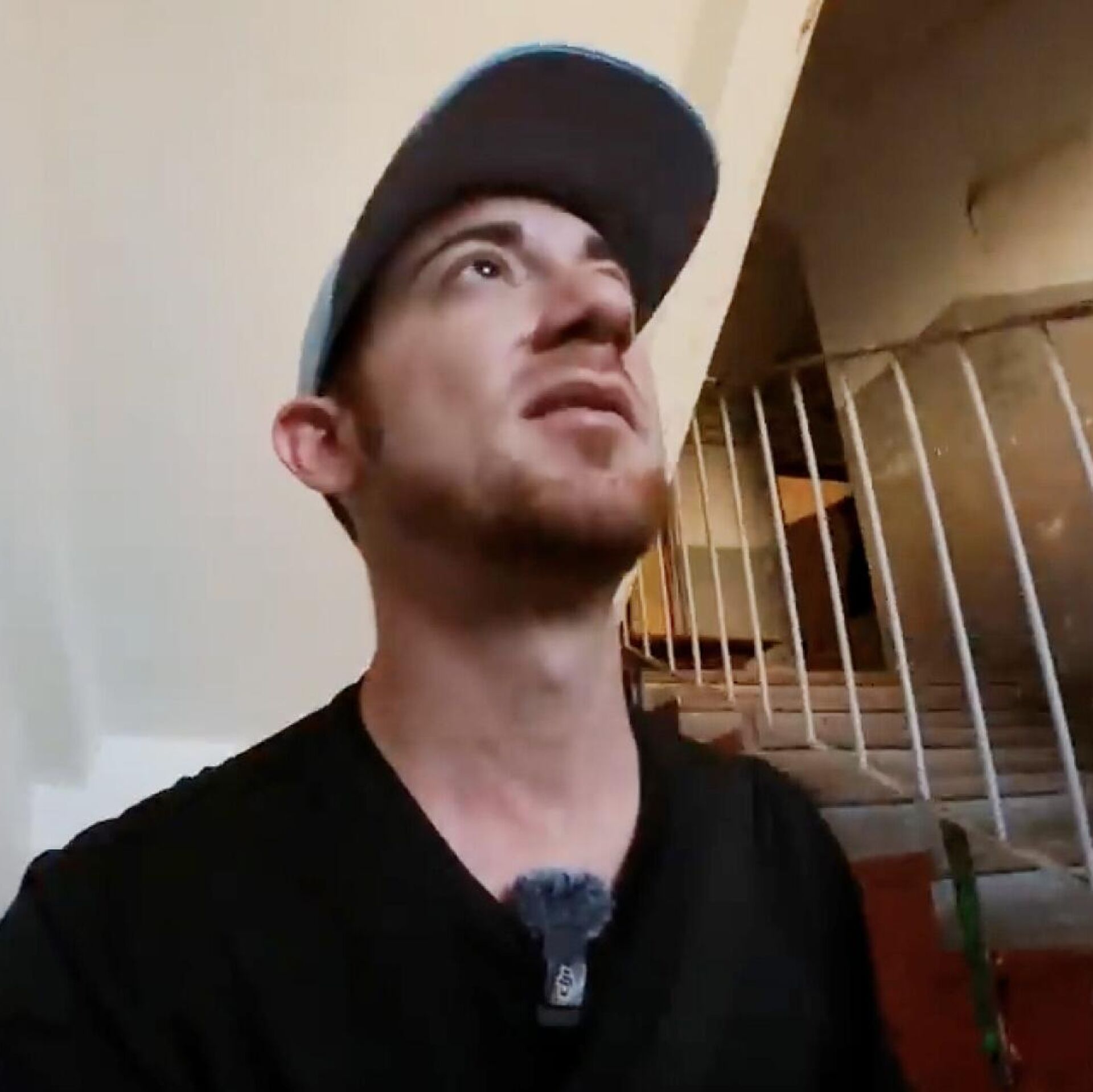 У подъезда дома герои ролика встречают еще одного местного.