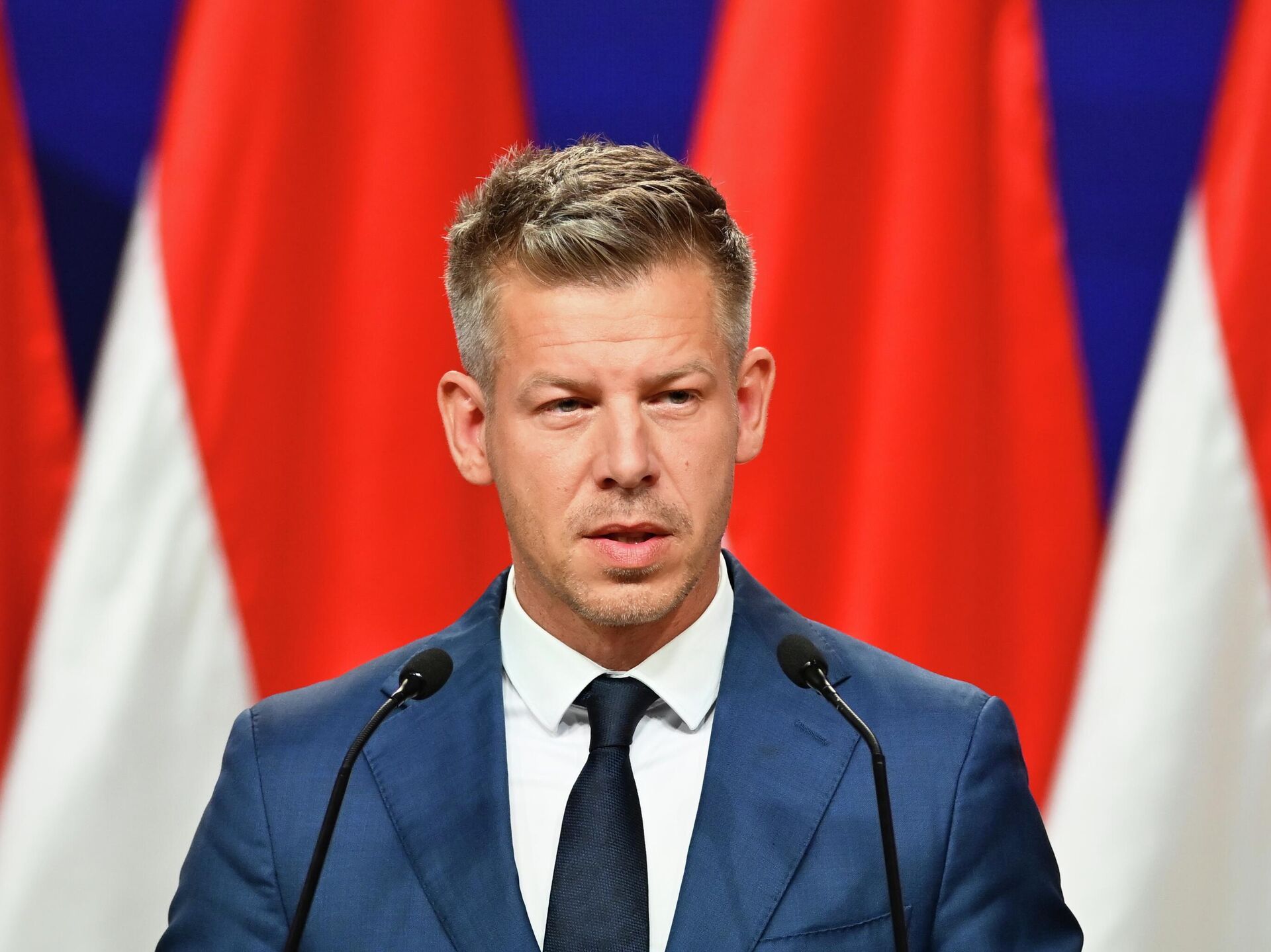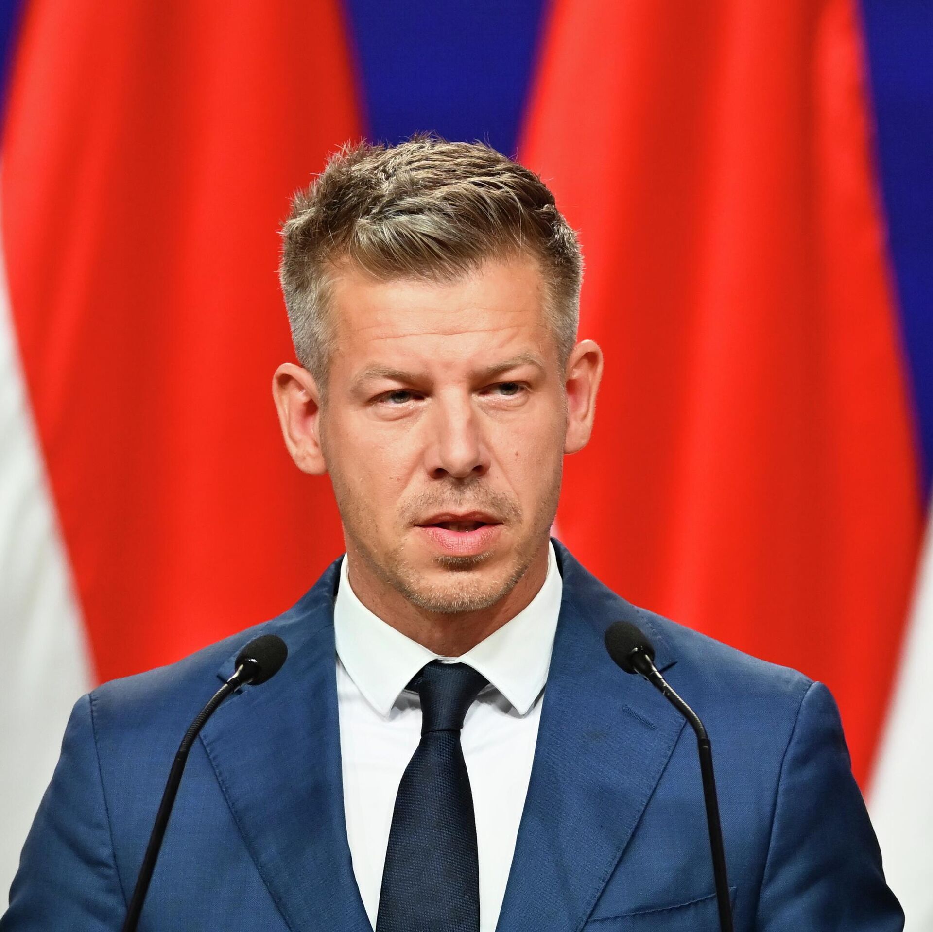 © AP Photo / Denes ErdosЛидер победившей на парламентских выборах в Венгрии оппозиционной партии "Тиса" Петер Мадьяр